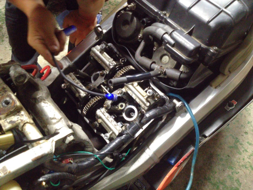 僕のVFRは先週末にエンジンを壊してしまってOKRに入院中なんですけども、一応エンジンは掛かってアイドリングもするものの、イマイチ原因が釈然としないとのことで。