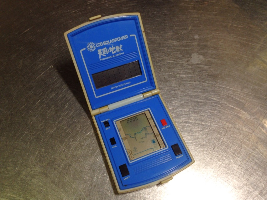 これはコンパクトみたいにパカってなるヤツだけども、筐体に書いてある通りLCD SOLARPOWERなので、30年以上前のゲームなのにまだ普通に動いてる。