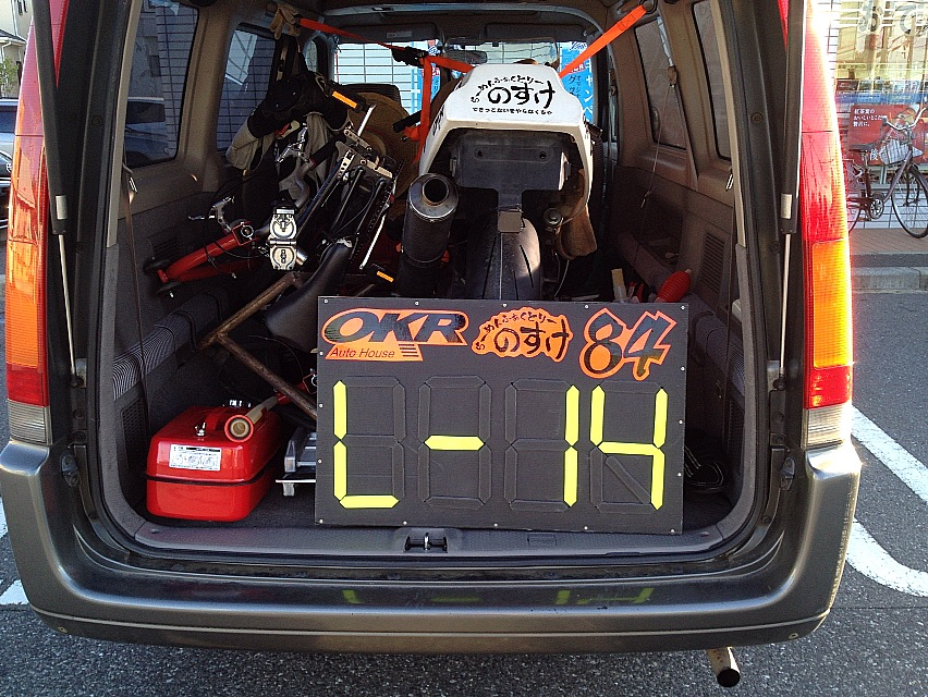 今使ってるサインボードは、一昨年初めてレース参戦する時にホリックさんがくれたヤツで、耐久レースに出るのに『あと何周したらピットイン』みたいなサインを出すためのものなので、4桁1段表示なんですよね。