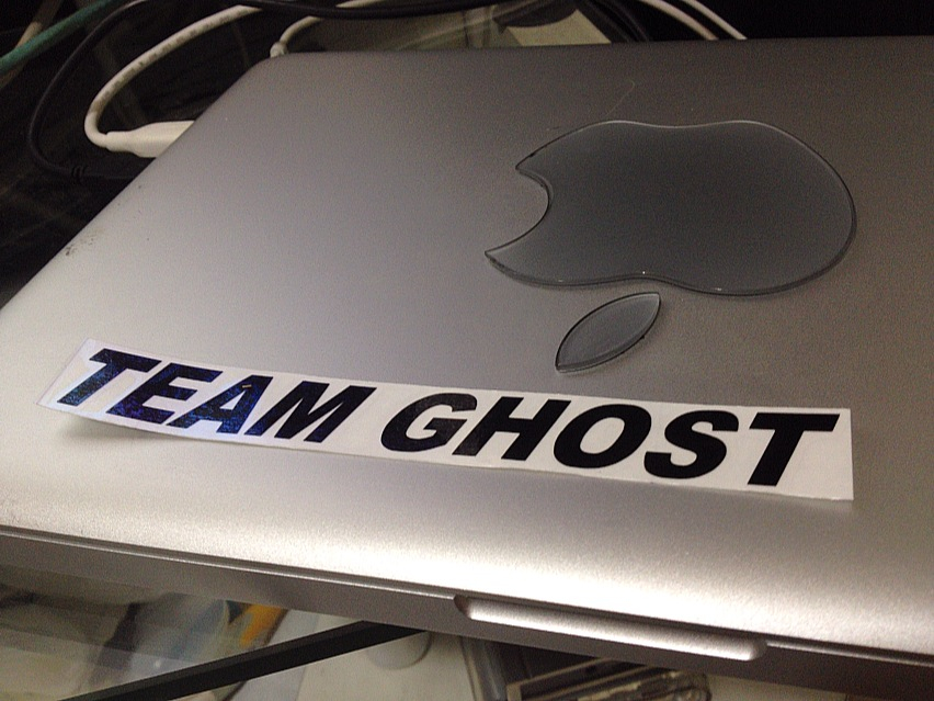 切ったら余分を取り除くんですけども、僕のチームのロゴは全部文字なので、TEAM GHOSTの後のThe Bullet Viper.Since 1992.を切り抜くのが想像を絶する面倒臭さ(笑)