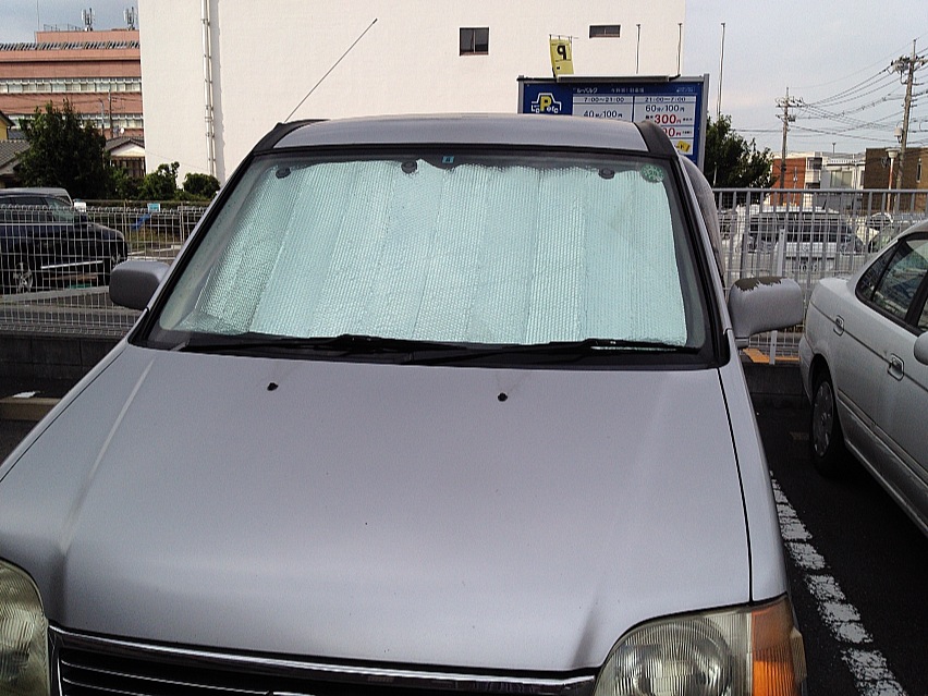 そんでこの手の日除けは梱包材のプチプチの表面をアルミにしたようなものなので、空気の層を挟むことで更に熱を伝え辛いという気休めつきです(笑)
