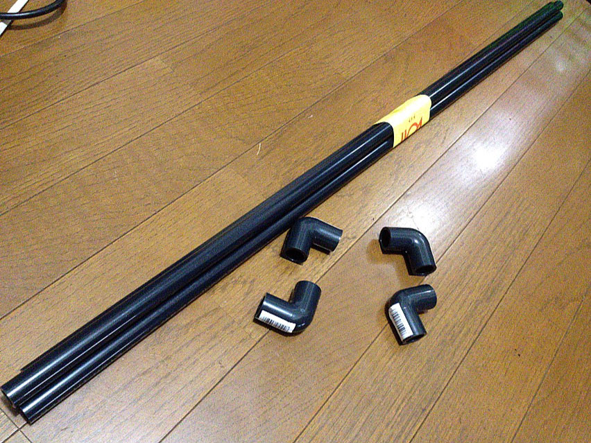 1メートルのパイプ3本と直角に繋げるジョイントみたいなの4個。