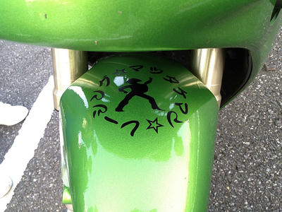 体験走行終了後はみんなでご飯食べて帰りますか!の流れなんですけども、じゅりーさんのガンマがやたらと綺麗だったので、『マツタケマンレーシング』のステッカーを貼ろうぜ!!ってコトになった。