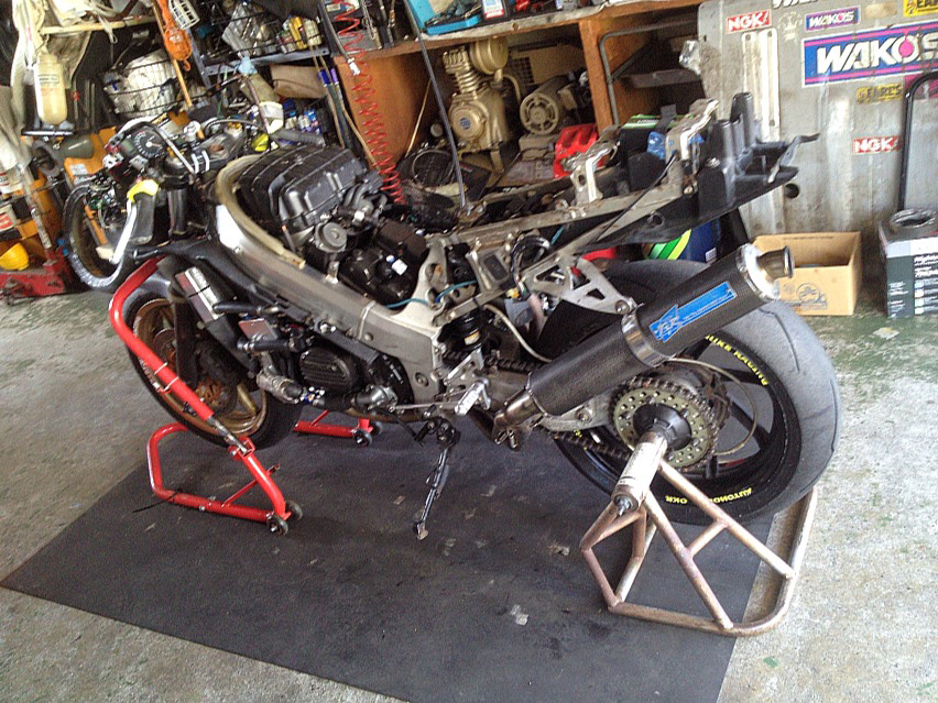 で、極力下道で部分的に高速を使ってOKRに到着してみると、ストリップ状態のVFRが店先にドドンと鎮座!…していたのだけど、その前に何やらこのような部品のところに連れて行かれまして。