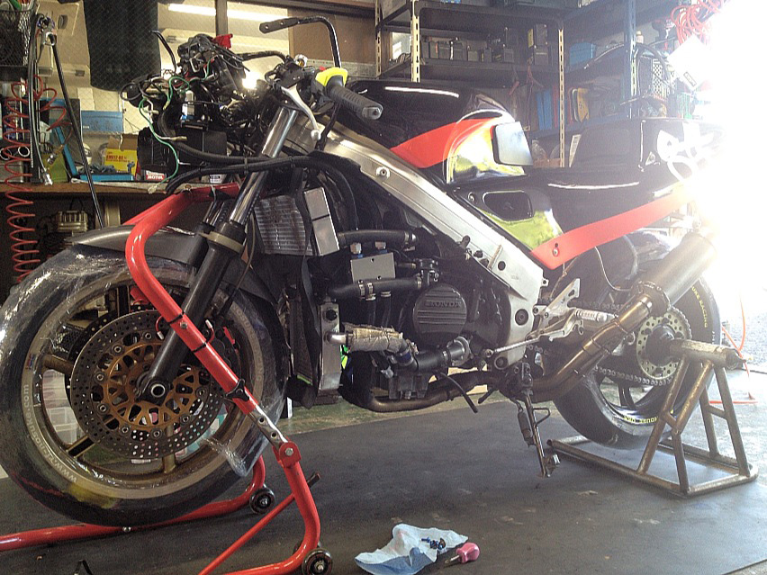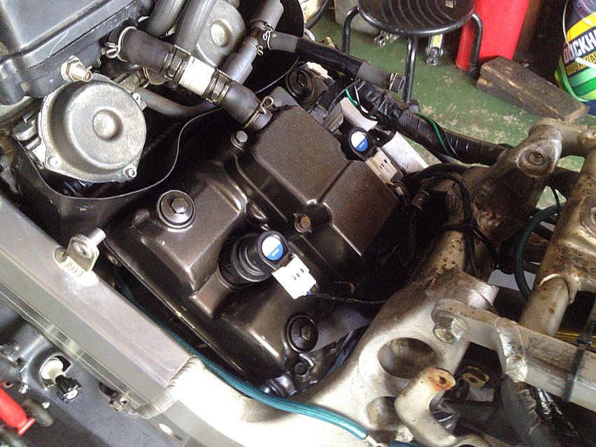 とか、相変わらず僕の観点は少しズレてるようなのだけど、前にVFRのエンジンを降ろした時に戦う写真家TDくんが社長とダイレクトイグニッションにしましょうよ!とかそういう話しをしてたのを社長がホントにやってくれたらしい。