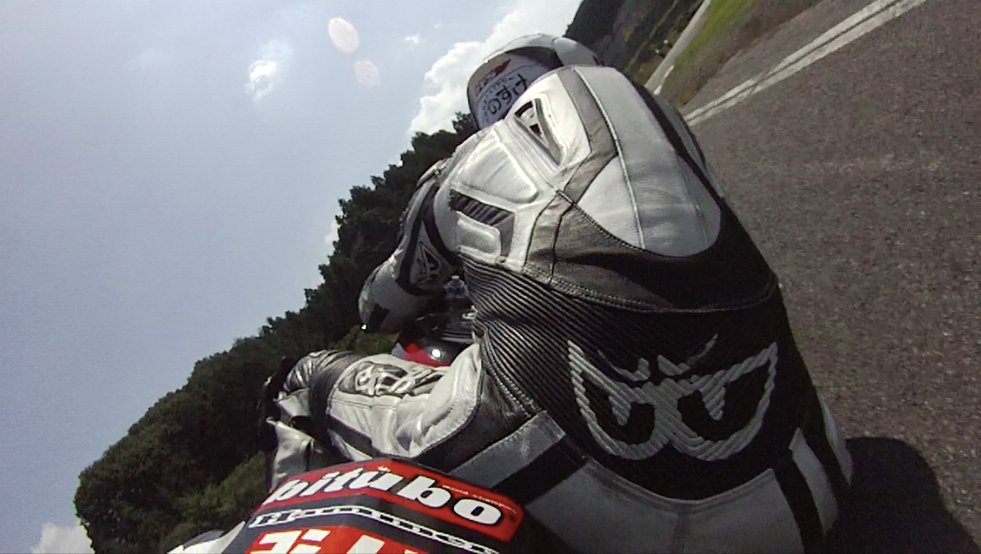 で、8月のプラ4なんですけども、僕が持ってるステーではハットリのGSX-Rの良い感じの場所にカメラを設置できなかったので、『今回は雰囲気だけでも撮っておこうかな…』ってことで、テールカウルから自分を映してみたんですよね。