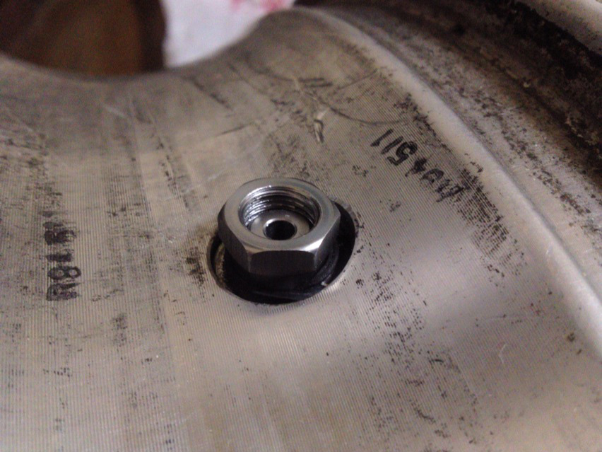 写真だと判りづらいけど、パッキンの大きさにあまり余裕がないので、ナットに引っ張られて歪むとエアーが漏れるかも知れない。