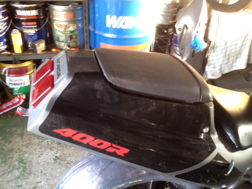 物凄くずさんな補修を終えたらカウルを着けてくんですけども、シートカウルを着けてタンデムシートを着けようとしたら、スカっスカっ!ってなって手応えがない。