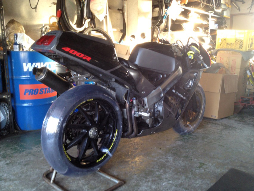 この前のプライドミックスでシートカウルが割れてしまって補修しないといかんってのと、シーズンも終了したので久しぶりに練習カウルに載せ変えるかってことで。
