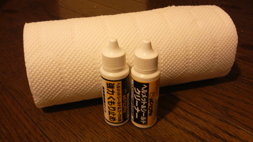 以前この拭き取りを手抜きしたら真冬の早朝に前が曇って何も見えなくなって、コンビニでティッシュをゲットするまでシールドを開けて走って鼻水がちょちょ切れたっていうセンセーショナルな事件が起こったので、そりゃぁもう執拗に真夏の女の子のむだ毛処理と張るくらい念入りに拭き取ります。