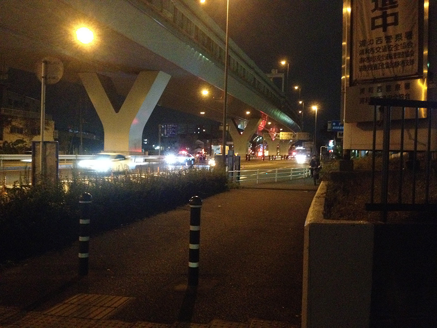 今日の理不尽且つ不愉快な出来事を我慢できたご褒美に、普段は自粛しているちょっと良さげな酒でも買ってやるか…と思いつつロヂャースに寄って、ちょっと良さげな酒でも買ってやるか…と考えていたことを忘れて他の買い物をして、バイパス沿いの歩道を我が家に向かって歩きながら、ちょっと良さげな酒でも買ってやるか…と思っていたことを忘れていたことを思い出した頃、バイパスが何やら物々しいことになっているのに気づいた。