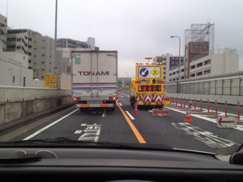 なので迷わず高速に飛び乗ったんですけども、乗る時には事故で何処其処まで通過何分とかそういうのが許容値だと思っていたら、何故か事故現場に近づいてみると通行止めとか…。