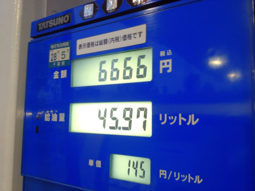 ガソリンスタンドでバイトしてた自分としては、給油する時は何リッターとか何円とかをキリの良いトコにするんですけども、『そこは46.00リットルだろ!』とか思いつつもオーメン+6(笑)