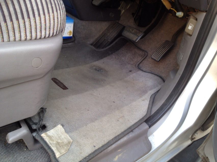 で、試しにフロアマットの下に敷いてみるか、この滑り止めシートを!とフロアマットを剥がしてみたら…