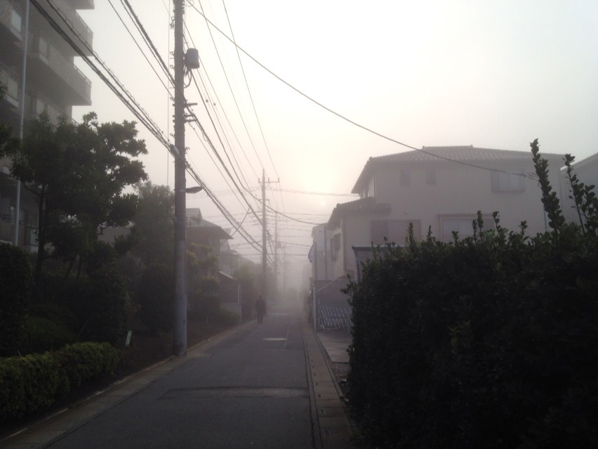 写真で見るとそうでもなさそうだけど、実際には次の交差点はもう見えないっていう勢いの濃霧。シャレにならない。
