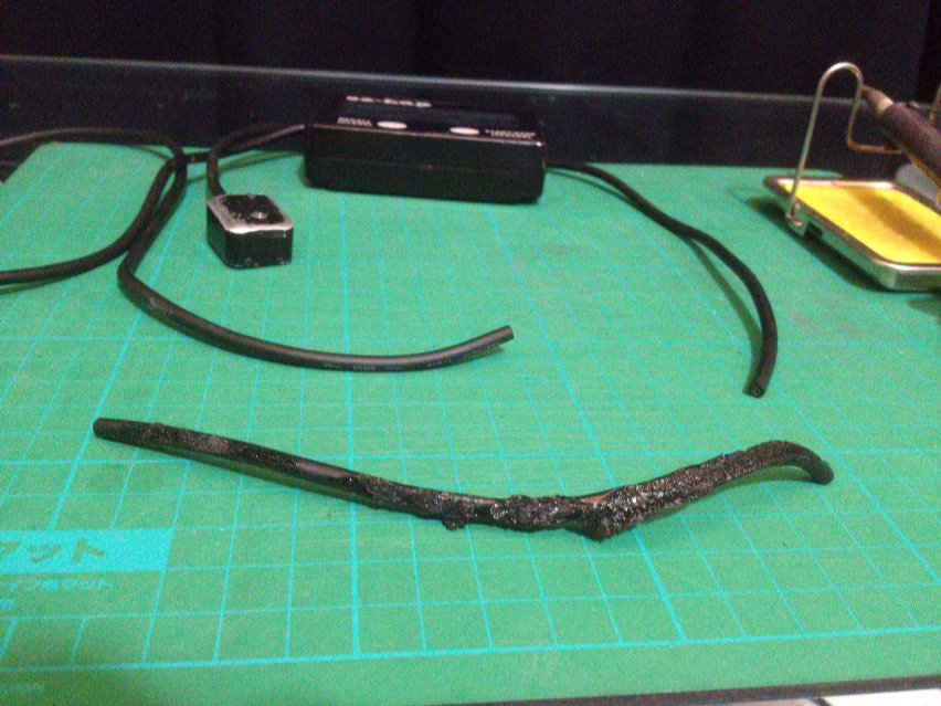 我が家にはドライヤーがないので、いつも熱収縮チューブを使う時はライターの火の根元辺りの弱火でやってたのだけど、今年は2月からタバコを我慢したままシーズンが終了してからも吸い出すタイミングが判らなくなって今もまだ我慢中なので、部屋中ひっくり返してもライターが見つからない!!