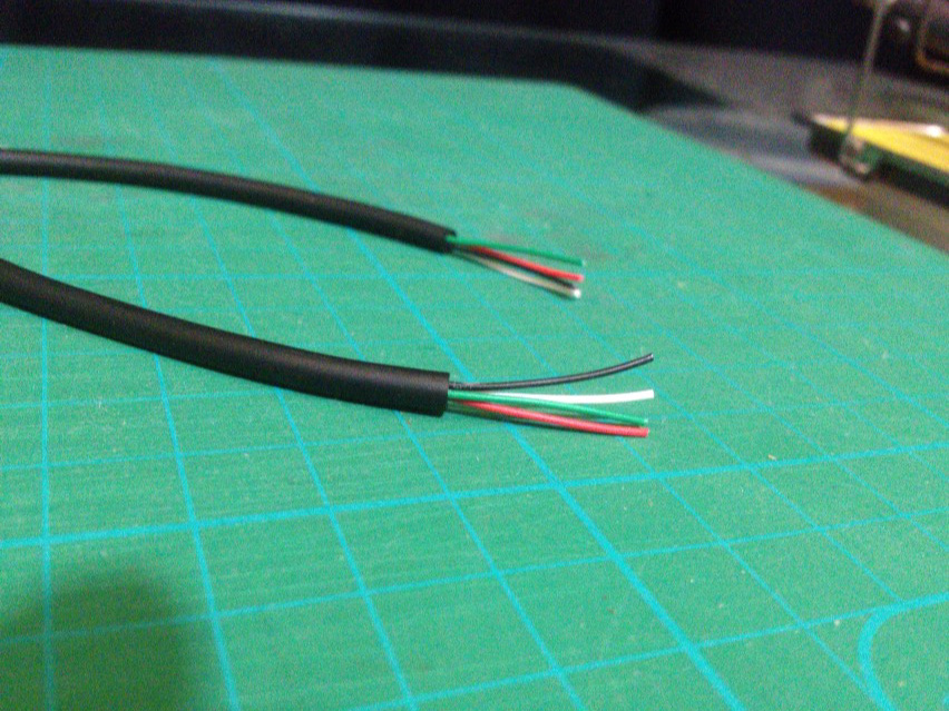 あとは先に熱収縮チューブを通してから同じ色同士を結んでハンダで着けて、熱収縮チューブに熱を加えて圧着すればオッケーなのだけど、ここで問題が発生。