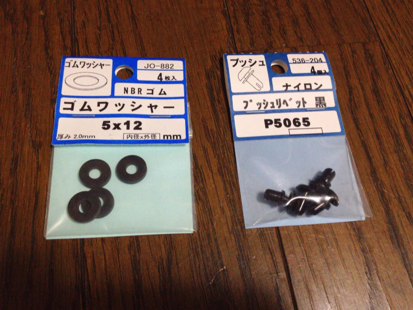 用意したのは5mm径のゴムのワッシャーとプラリベット。