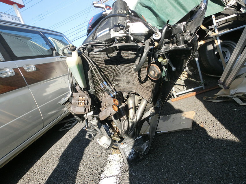 R1なんですけども、得体の知れない大きな塊に真っすぐ突っ込んだのでダメージはフロントに集中していて、アンダー3分割、トップブリッヂまっぷたつに分離してバラバラ。