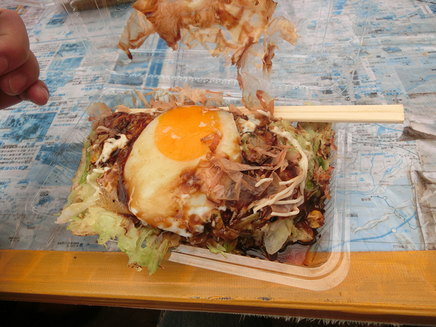 せっかくこういう場にいて、屋台もたくさん出ているので何か食べようっていうことになってですね、僕はお好み焼きを食べることにする。