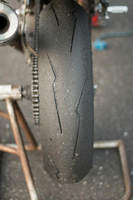 最終的に逆履きしたリアタイヤ、だいたい左右同じような形になって、もうそろそろお役御免。