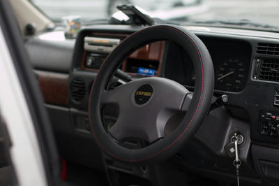 可もなく不可もなくってくらいなので、ちゃんと回せば曲がるし無理に押さえつけてなくても真っすぐ走る。何の不満もないってヤツなんですけども、隣りに停まってた軽トラを見て『おっ!良いじゃんそれー!!』と思ってですね、ロヂャースの2階のカー用品コーナーに行ってハンドルカバーを買って来た。
