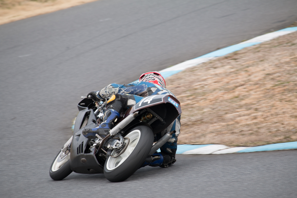 ってか14番さんはですね、他の誰よりもぶっ飛んだバンク角で最終を回るので、外から普通に狙うと身体が見えてる写真がほとんど撮れない。その代わりフォームとライディングが安定してるので、ヘルメットがピッタリ止まり易い♪