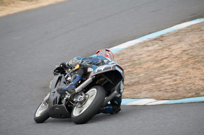 それから、前回トミンで撮った時に最終の立ち上がり付近をパドックの販売機側の端から狙うとたまにカッコイイのが撮れるのが判ったので、今回もいろいろ試す。