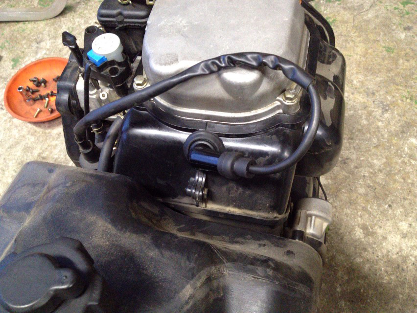 チョークを引いてエンジン始動後、チョークを戻した時に一度振動が増えてからアイドリングするんですけども、そのチョークを戻した時の振動でプラグキャップが5mmくらいズルっと持ち上がってエンジンが停止しながらまた下がった!