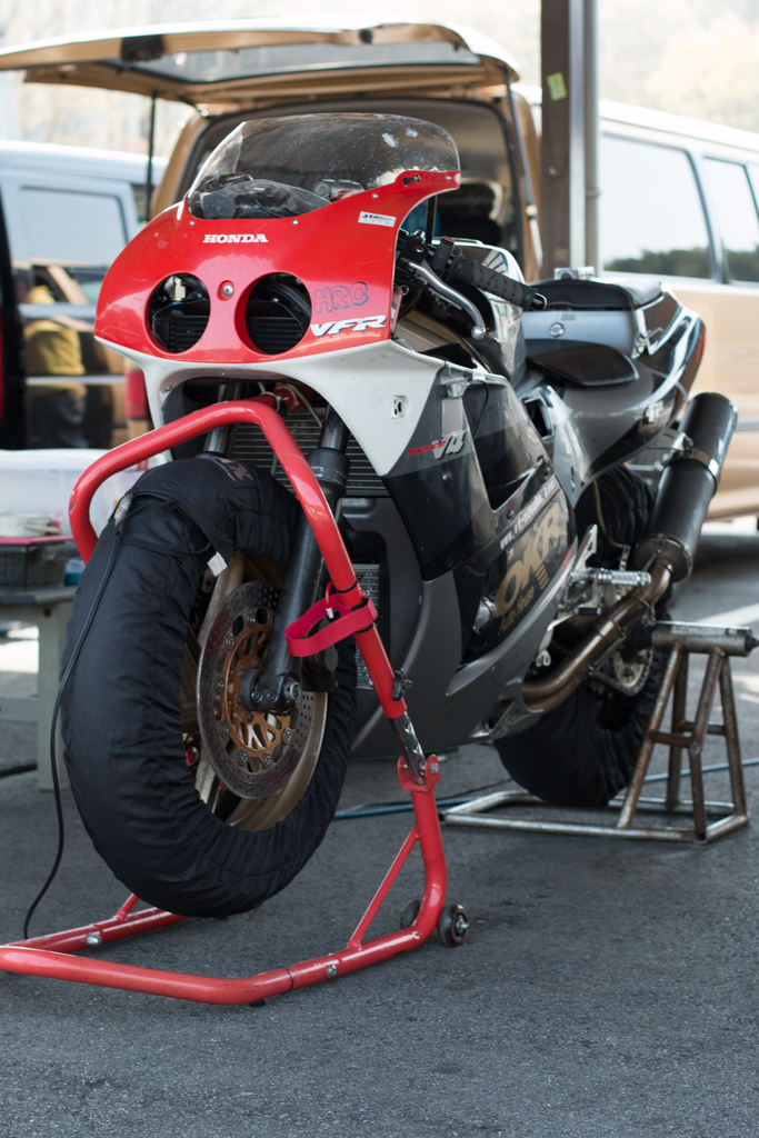 VFR400R(NC30)でたまにミニサーキット走行。C24セレナ(トランポ)と時々カメラのお話し。