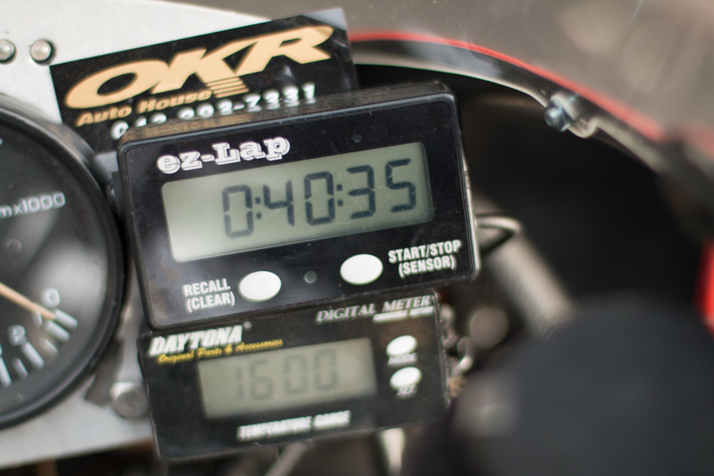とりあえず1本目は去年更新した自己ベストの時のファイナルにセットして走り出してみたのだけど、タイヤが150に変わっているからか、ホームストレートでレブるのが早すぎる。