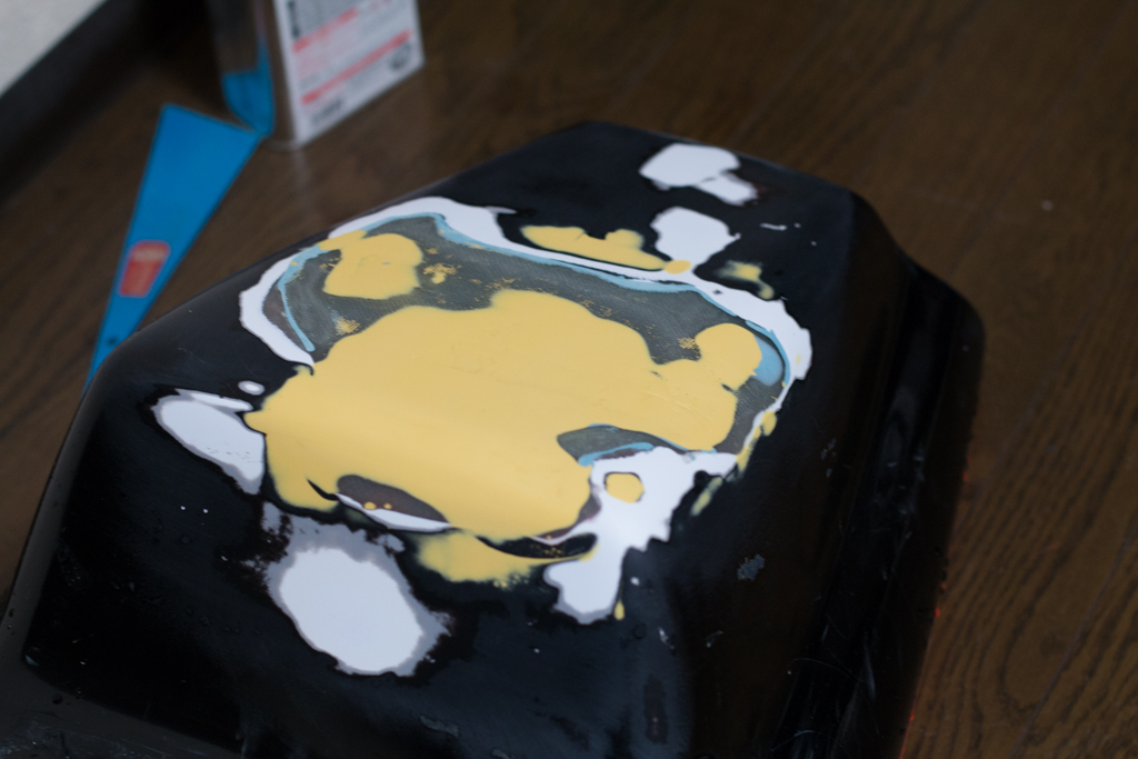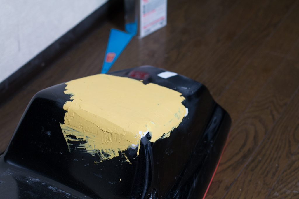 全体がうねってるのはもう良いとして、微妙なクレーターみたいなのがいくつか残ってるのが気に入らないのでもう一度パテ。