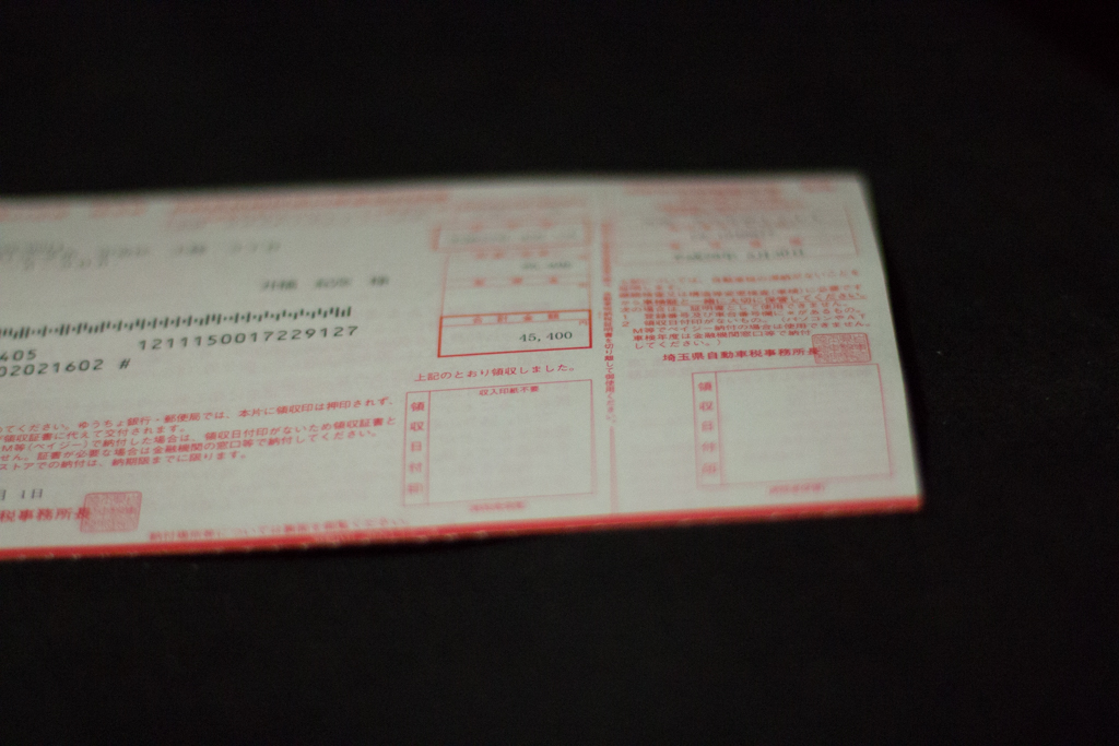 確か毎年乗り物関係の税金は5万円くらいだったと思っていたけど、45,400円って思ってたより安いな!…と思いきや、良く考えたら去年まではこれにR1の税金が数千円プラスで5万円だったんだ。。