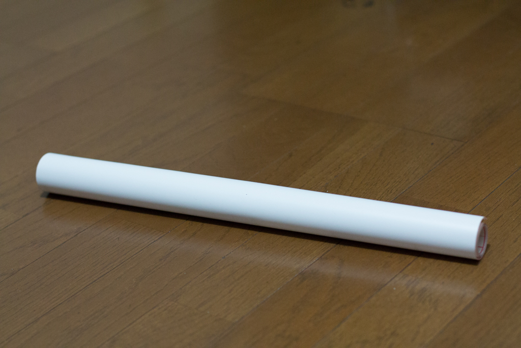 良く見ないで数日放置してたんですけども、今日シュリンクをビリビリ破きながらちゃんとみてみたら、壁紙の補修やカラーボックスの模様替えに!とか書いてあって、ずいぶんペラペラで強烈に巻いてあるのでクルンクルンなっちゃってもう大変。