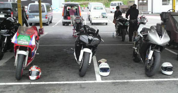 画像は一緒に行ったNSR250とCBR600RRと我が相方R1。みんな自走。