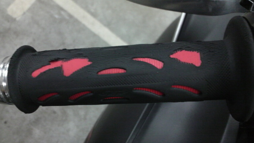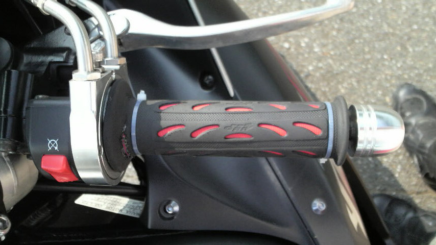 思うに今着けてるグリップは他のと比べて極端に柔らかい素材で出来てるんで、振動の吸収っぷりっていう点ではとても良い仕事をしてくれてんですけど、アクセルは常に動き続ける部分なので、多少全体が伸びてクリアランスが下がってるんですよね、きっと。