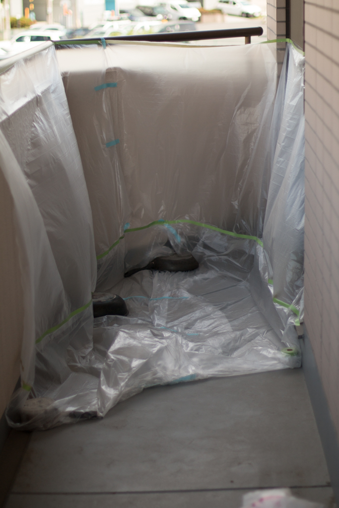 全体塗ると浮かせなきゃいけないのでベランダじゃ無理。