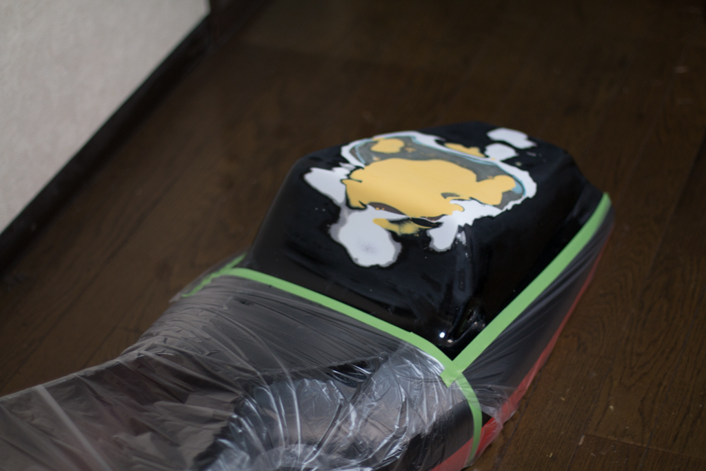 今日は特に風が強くて缶スプレーにはしんどいコンディションでしたけども、根気よく少しずつ重ねてなんとかそれっぽく塗れた。