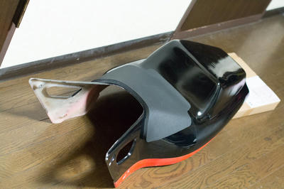 そんで届いたら早速貼付けてみたいところですけども、先週末に黒を塗ってクリアを吹くかどうか、まだ迷っているところなので、今はとりあえず貼付けないで合わせて雰囲気を見るだけにしておこうと、そんな風に