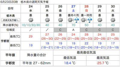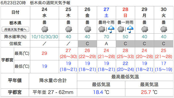 その代わり、昨日まで土曜は雨で日曜は晴れそうな予報だった宇都宮の予報が崩れてた。