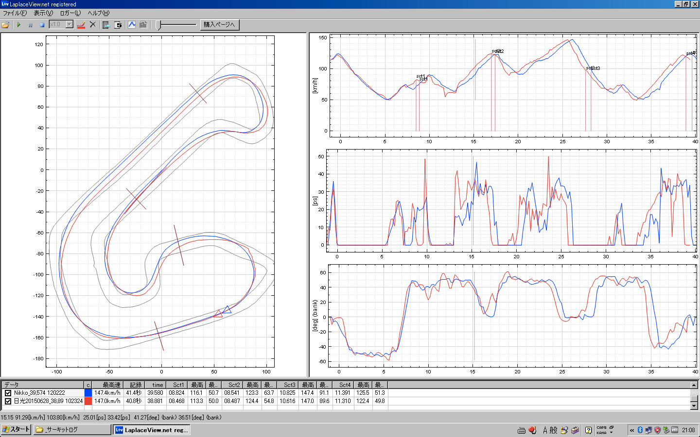 ラインが割と大きく変わってるのは予定通りっていうか、意図的にそうしたので良いんですけども、最高速が39秒57の時の方がほんの少しだけど出てるってのが腑に落ちん(笑)