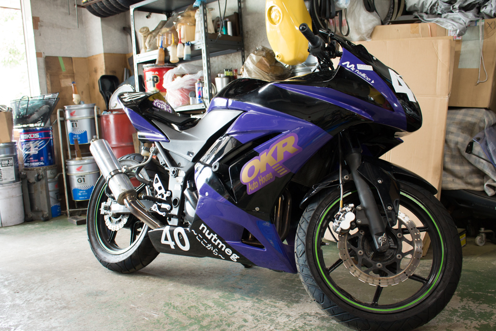 で、ししまるさんのNinja250Rはスクリーンがない以外は全部社長によって修理済みなので、乗り手の方が早くリハビリして来いと喝を入れられていた。