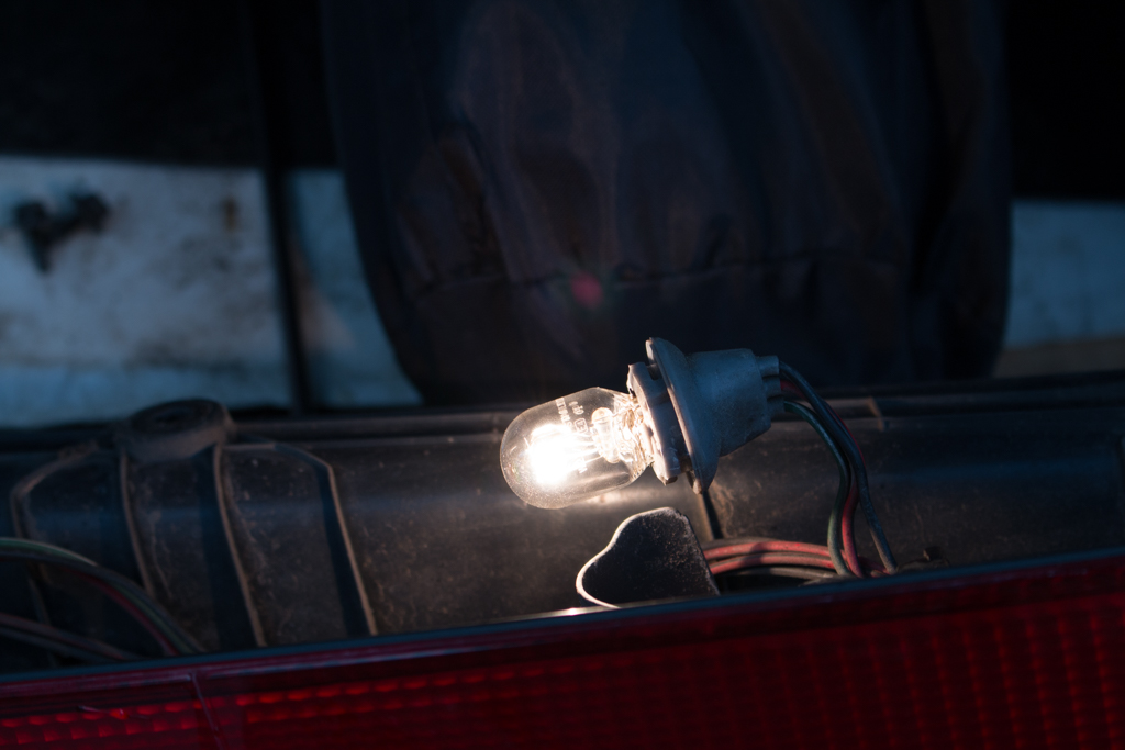 ステゴンのテールランプは以前車検の時に切れてるのを交換したような気がするのだけども…こんな一体型だったっけかな…と思いつつ外して、球を見てみたら真っ黒焦げ。