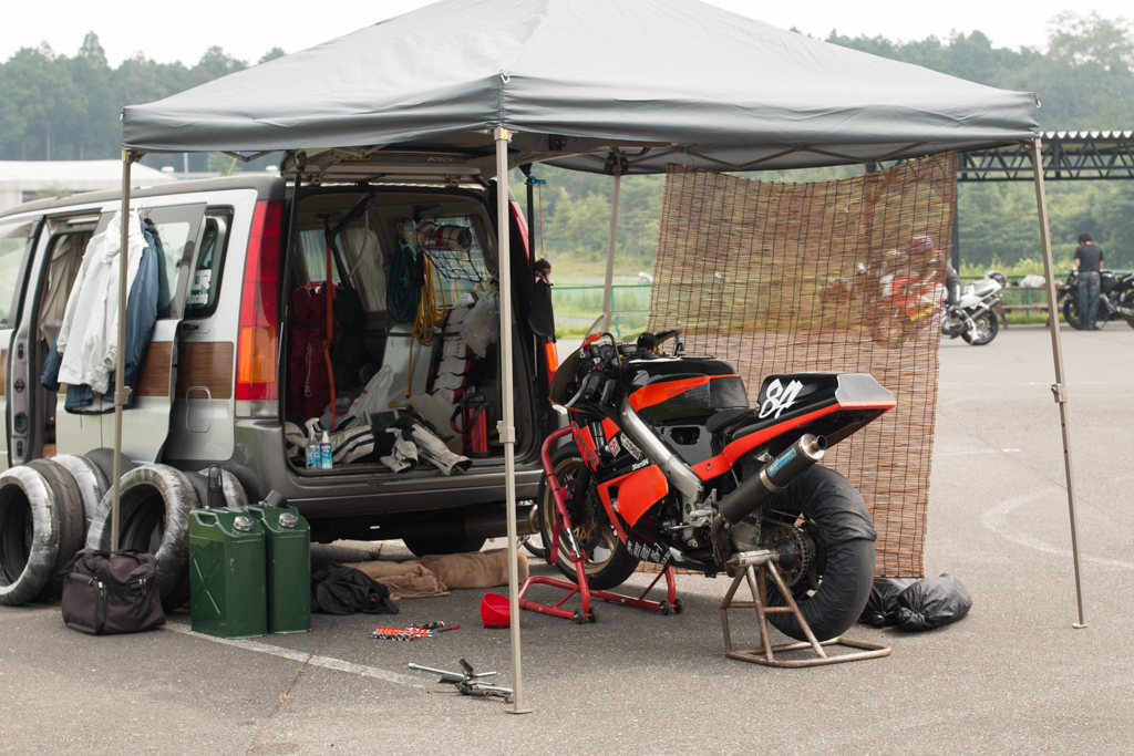 VFR400R(NC30)でたまにミニサーキット走行。C24セレナ(トランポ)と時々カメラのお話し。