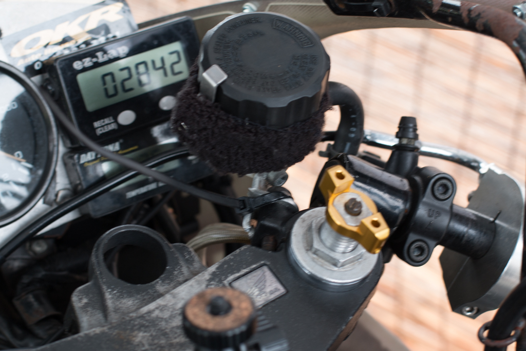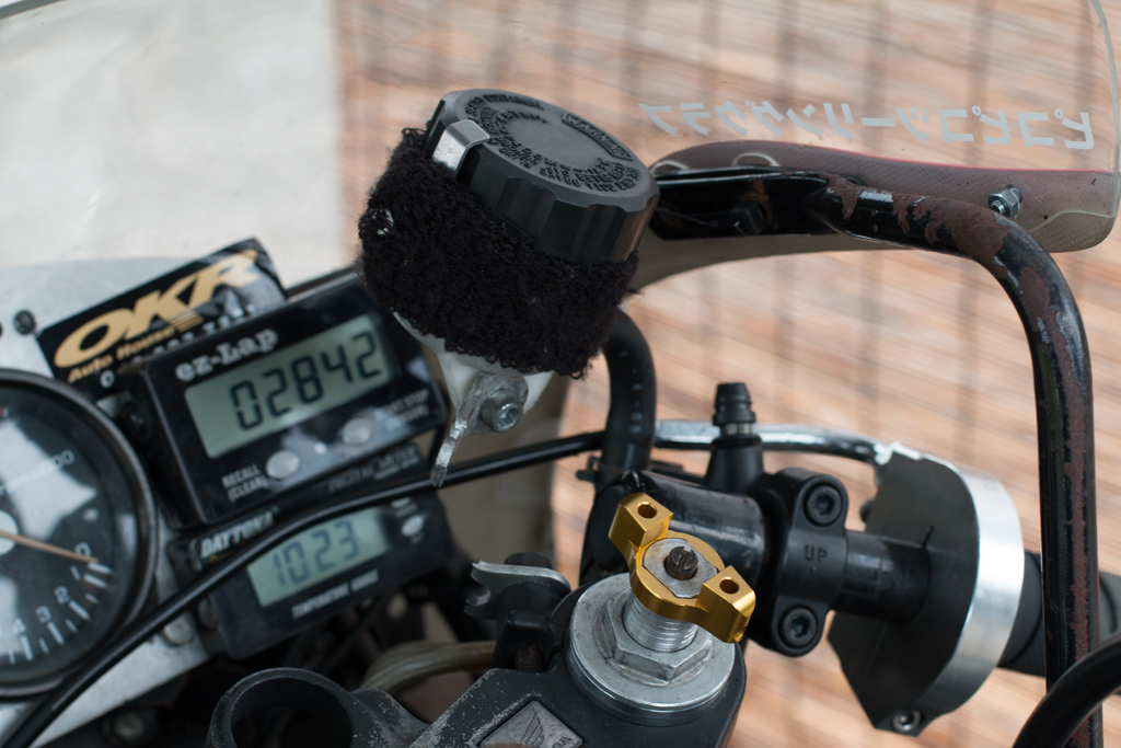ステーもげてフロントブレーキのリザーブタンクがプランプランしとる!!