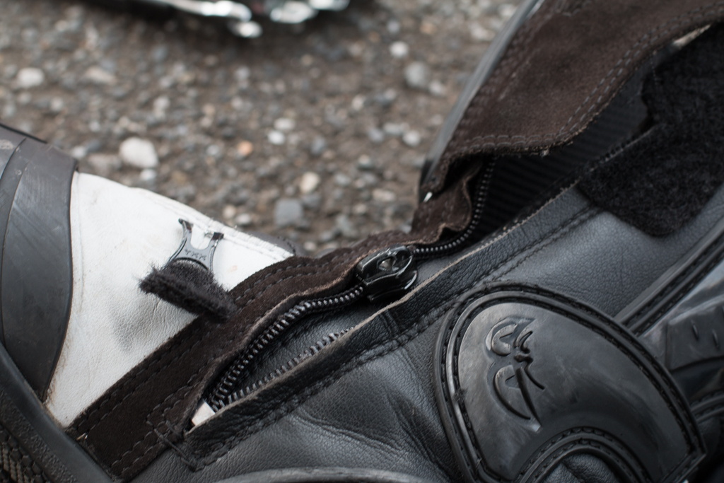 これまたノリさんに手伝ってもらってツナギの上を脱いだんですけども、ブーツを脱ごうとしたらこのタイミングでまさかの右側チャック壊れて脱げない。