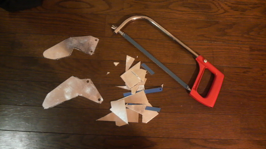 いくらアルミが柔らかいとはいえ、直線しか切れない鉄ノコでチョコチョコと切り落として行くのはかなりの労働でしたよコレ。。