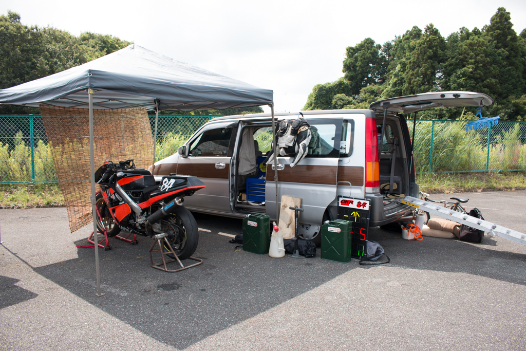 VFR400R(NC30)でたまにミニサーキット走行。C24セレナ(トランポ)と時々カメラのお話し。