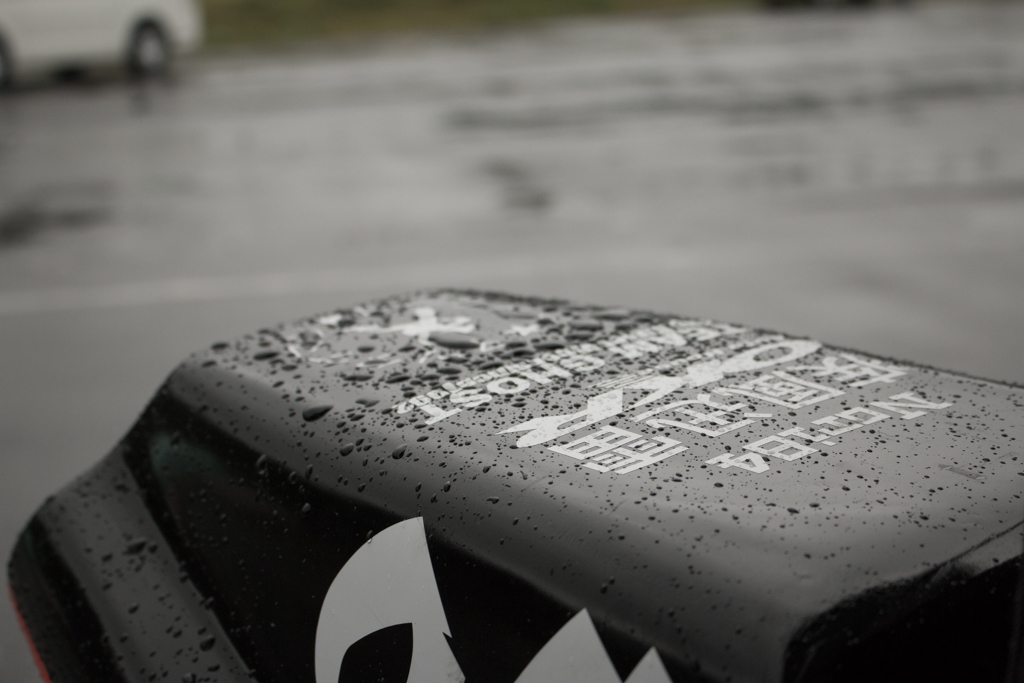 結局撤収してる間ずっとやんでるタイミングを待っていると遅くなりそうだったので、上だけカッパを着て片付けを始めたんですけども、VFRを車に積む時に地面もラダーレールもビショビショでその上タイヤカバーでツルッツルなので勢い良く行ったら滑って危険が危ないかも!!とビビってた結果、車体がトランポに半分くらい入ったところでエンスト。