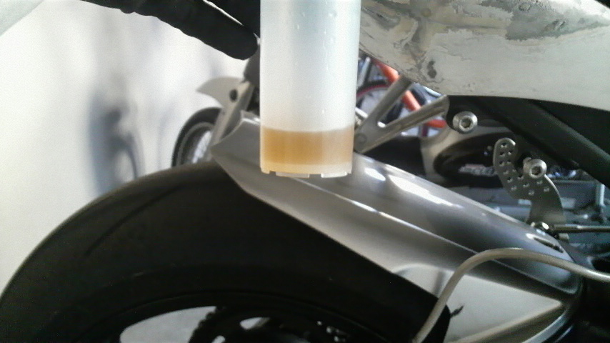 キャリパーの中にまだ少し残ってるだろうけど、それにしても少ない。ちょっと不思議な気分。
